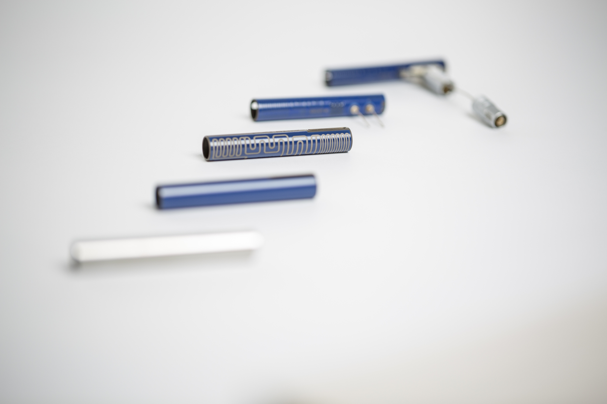 At first a ceramic isolation layer is printed on the tube. Then the layer has to be dried in a drying furnace in order to remove volatile components of the paste. Subsequently, the tube is put in a conveyor furnace. In this step the tube is exposed to a high temperature. As a result the ceramic components of the paste melt and combine to a closed-cell and smooth layer after cooling. This process is called burn-in.